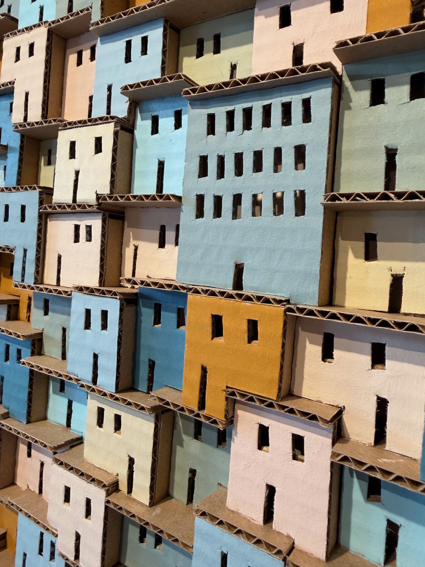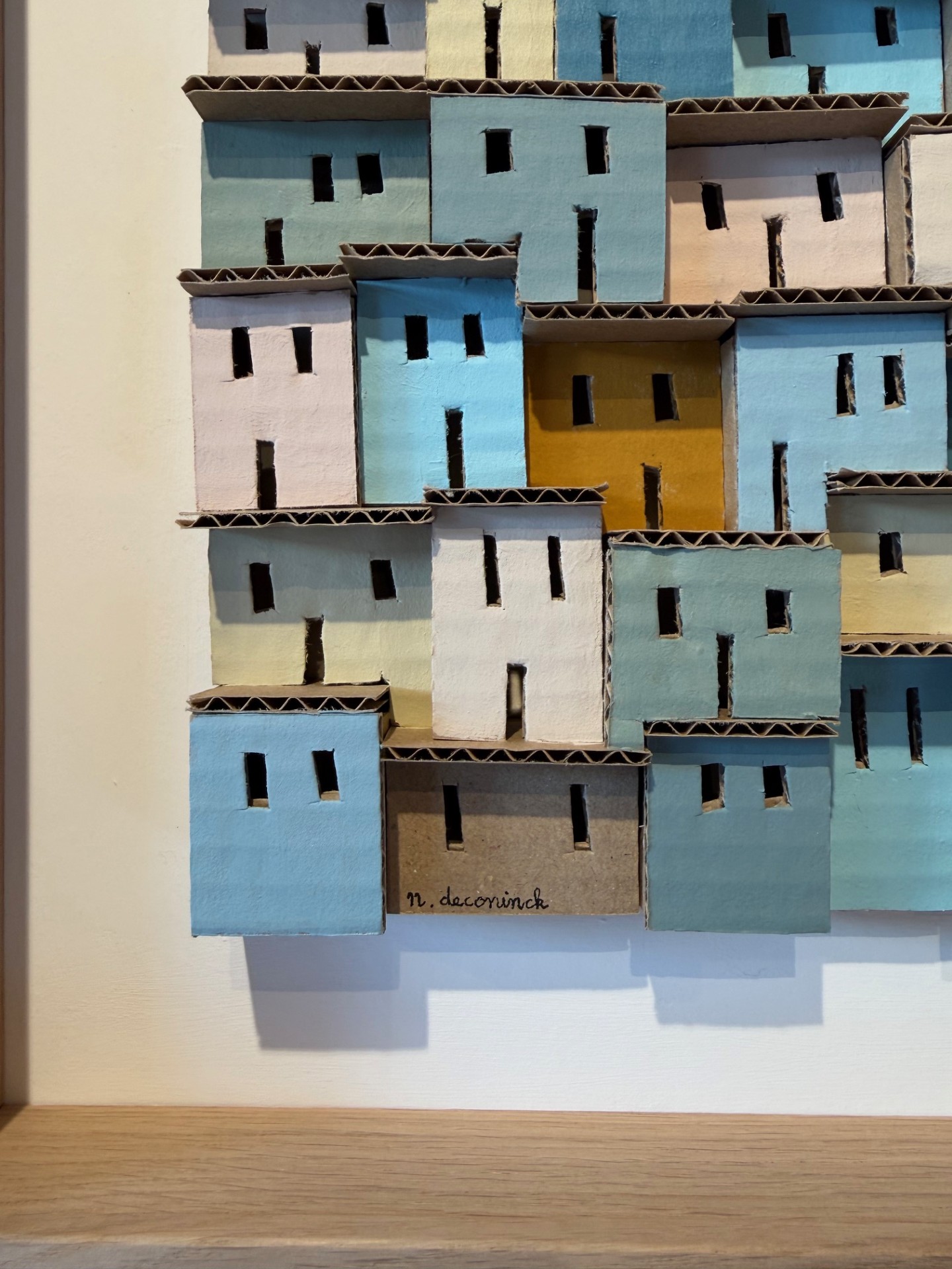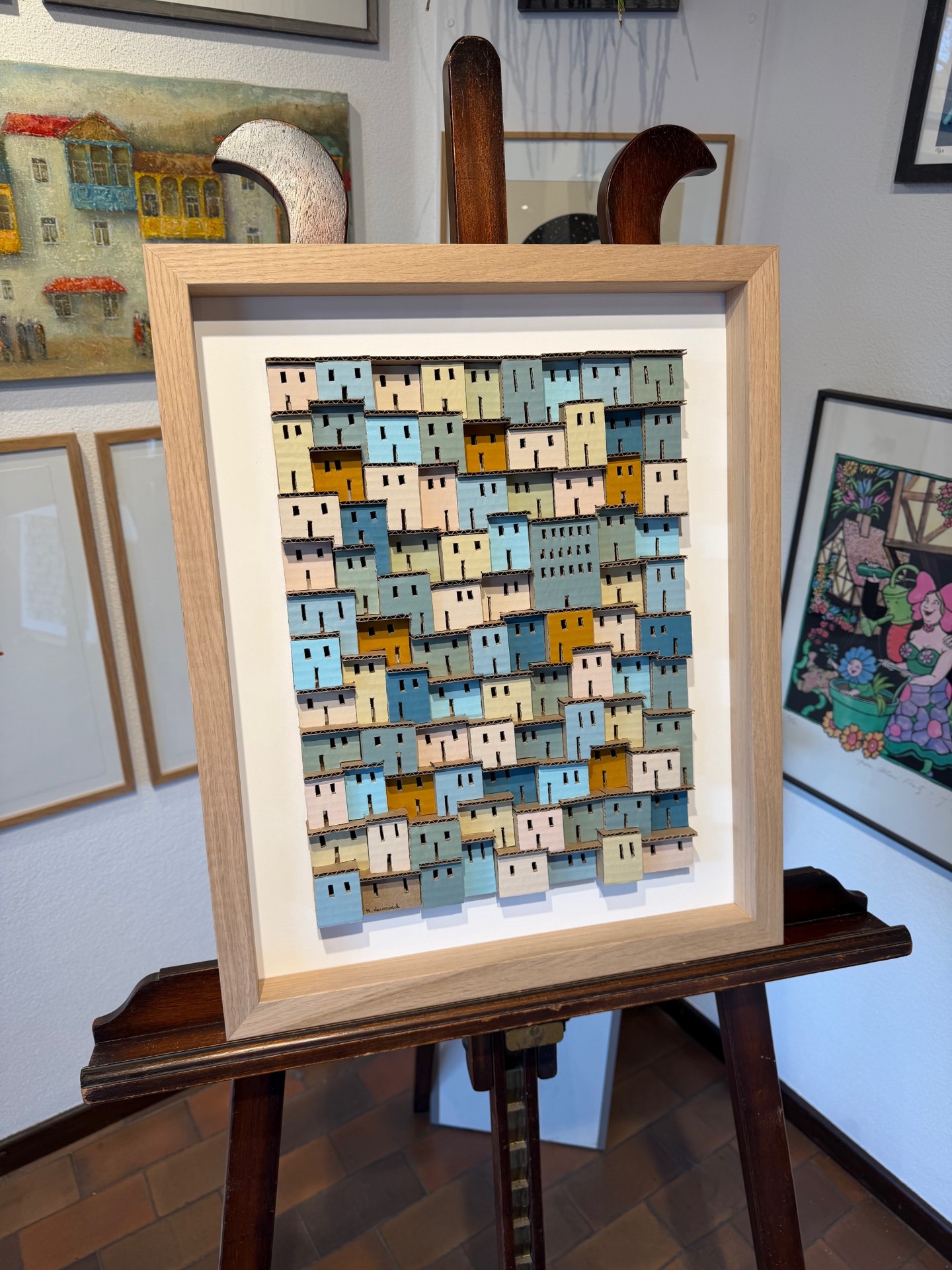 "Favelas", techniques mixtes, pièce unique et signée par l’artiste. Format 44 cm x 54 cm.