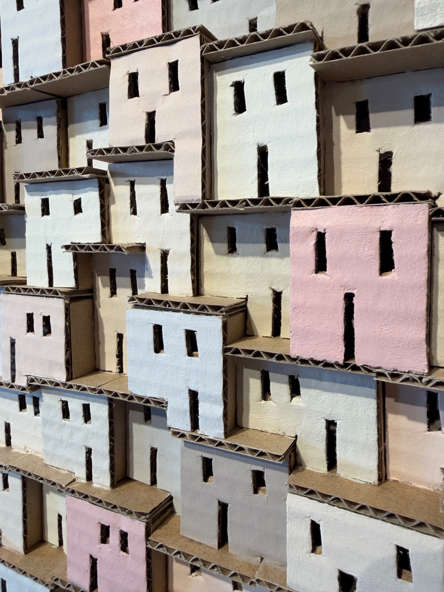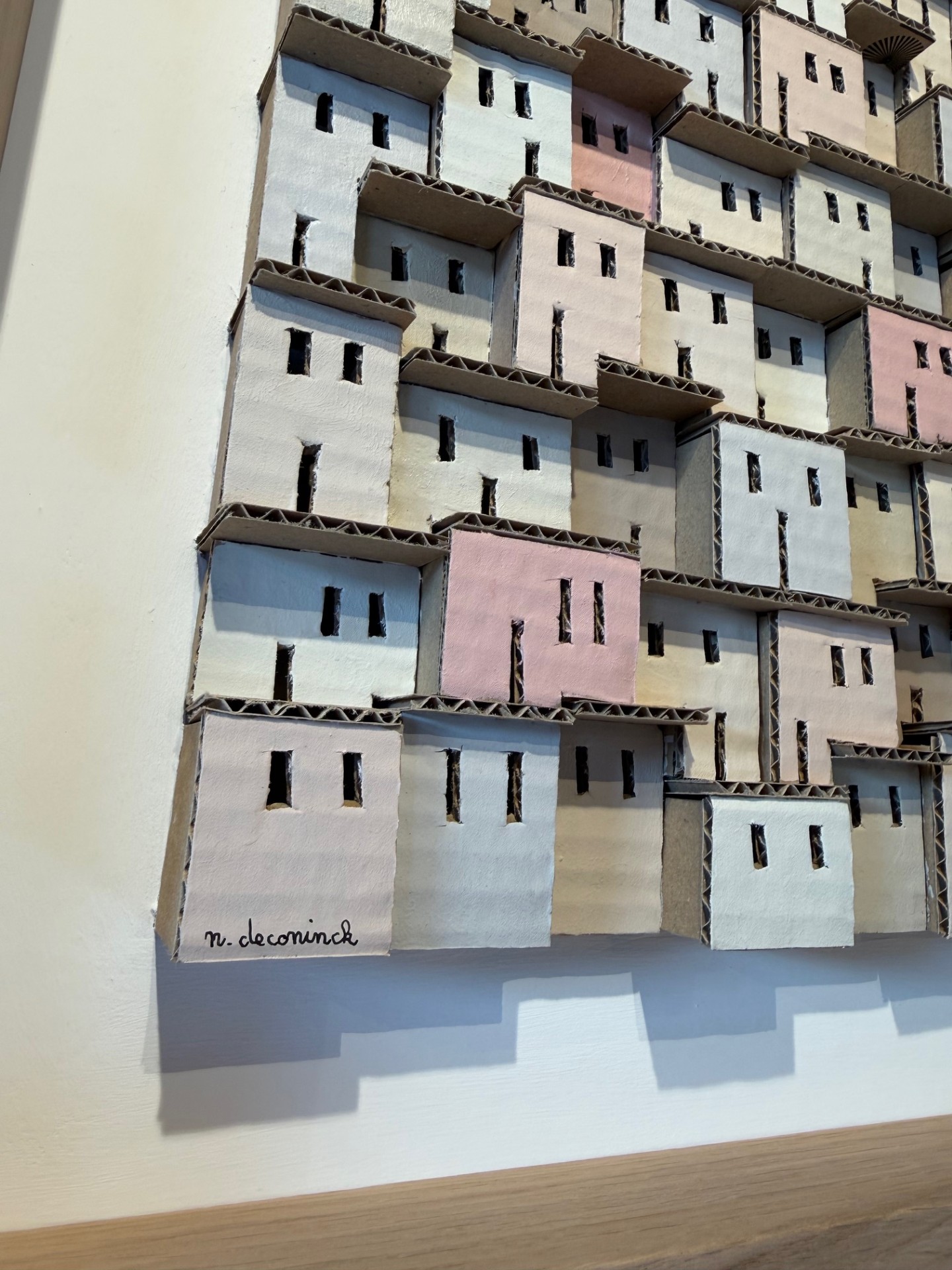 "Favelas Crème", techniques mixtes, pièce unique et signée par l’artiste. Format 44 cm x 54 cm.